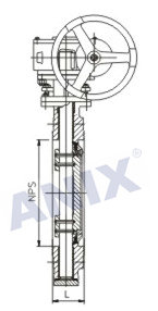 1、蝶板密封面采用堆焊鈷基硬質(zhì)合金,密封面耐磨損,使用壽命長。